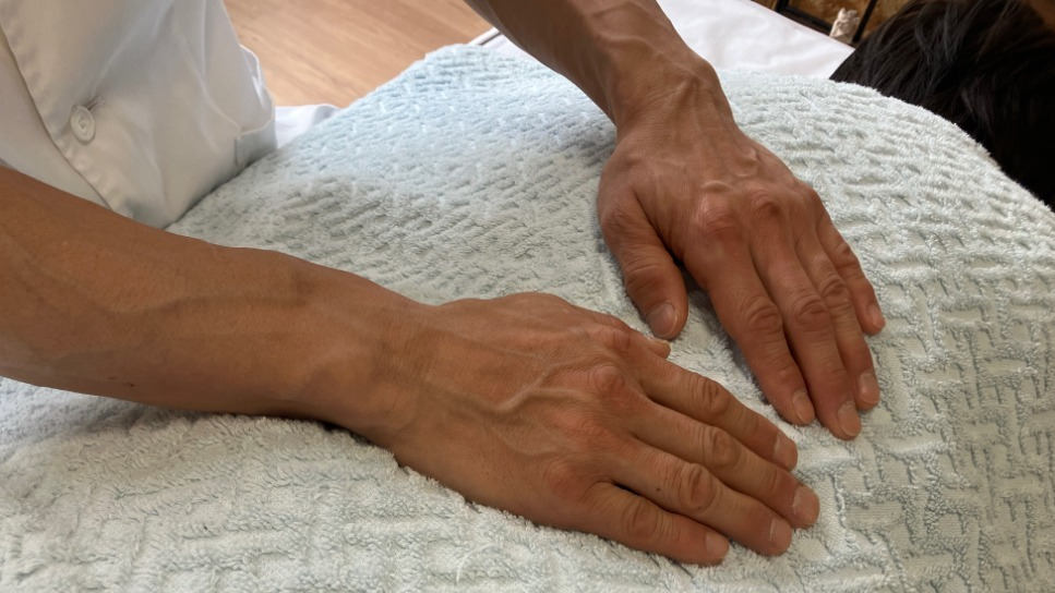 患者さんのからだ、こころのお悩みをヒアリングします。東洋・西洋両医学の視点でお悩みの原因を探ります。ツボや経絡、臓器の場所やリンパなどを意識し、治療が必要な場所を重点的に、かつ全身にも氣を送ります。コリ、冷えの気の滞りには気をめぐらせ、痛みの部分は痛みを散らし癒す氣を送ります。気がめぐれば、元気になります。